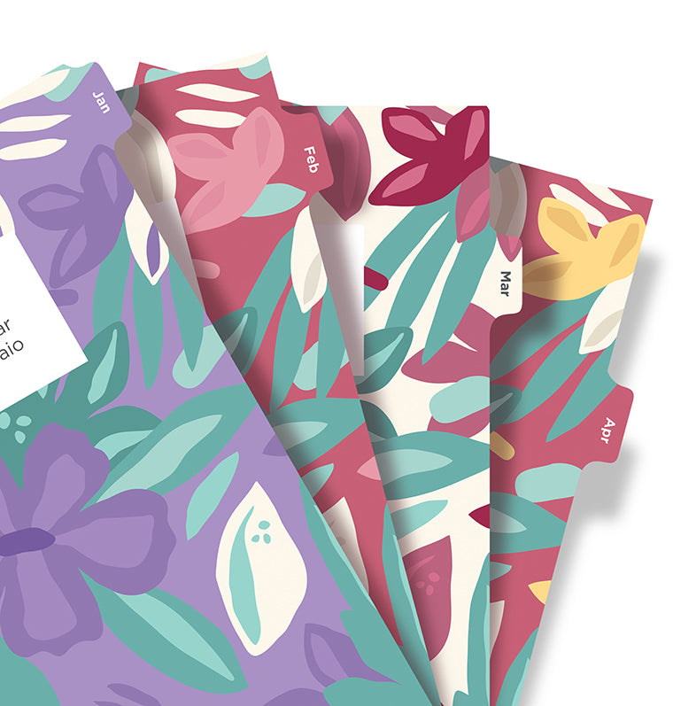 Beautiful floral watercolour diary refill pack with a 4 colour print design which changes from month to month. Suitable for your Filofax A5 Organiser or Clipbook.