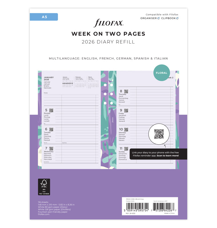 Floral Illustrated Diary Refill Pack - A5 2026 Multilanguage