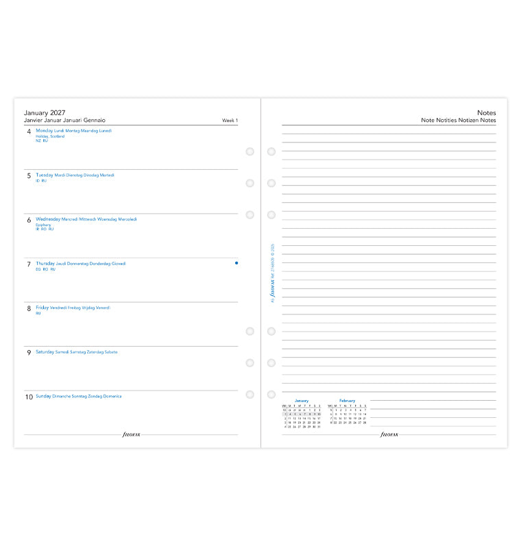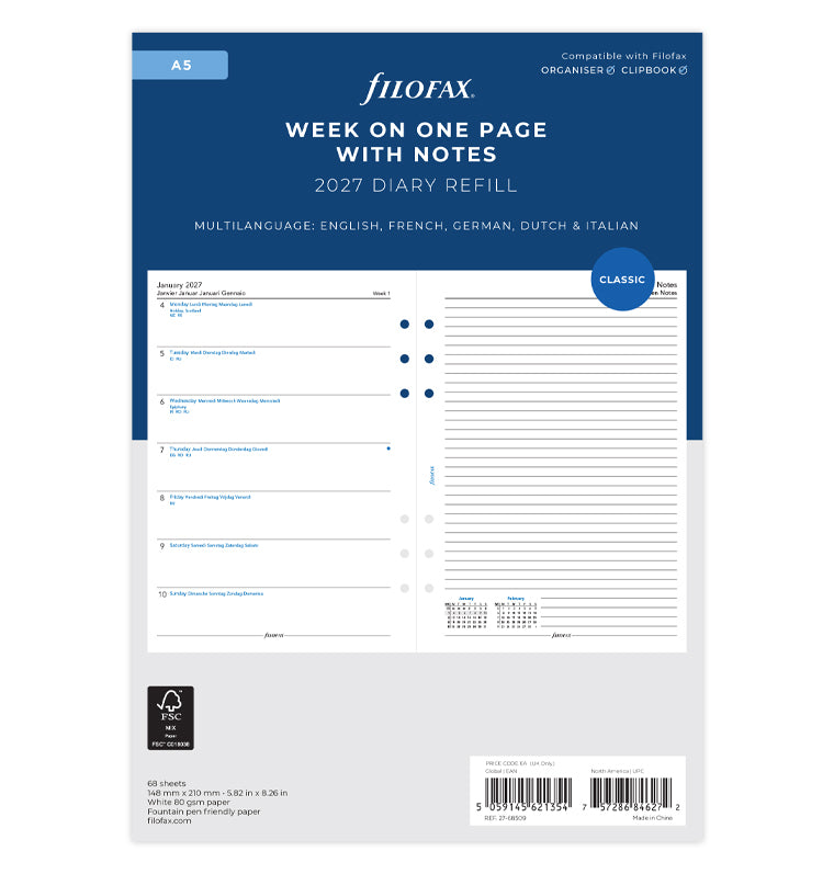 Week On One Page Diary With Notes - A5 2027 Multilanguage