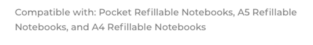 Compatible with: Pocket Refillable Notebooks, A5 Refillable Notebooks, and A4 Refillable Notebooks