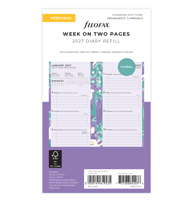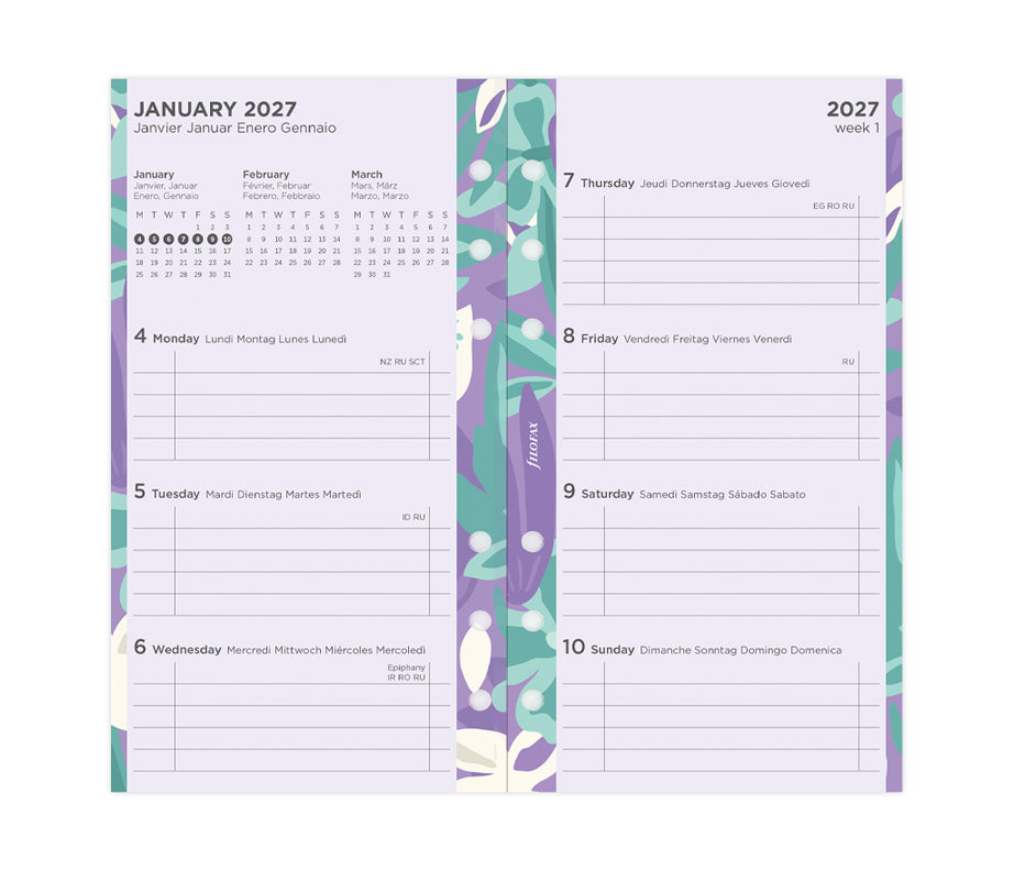 Floral Illustrated Diary Refill Pack - Personal 2027 Multilanguage