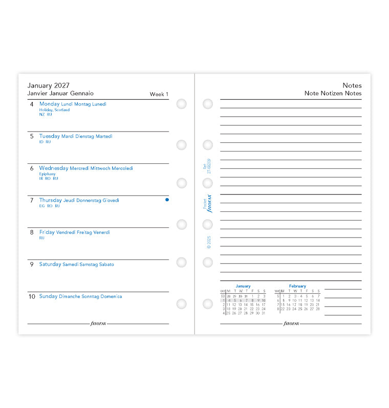 Week On One Page Diary With Notes - Pocket 2027 Multilanguage