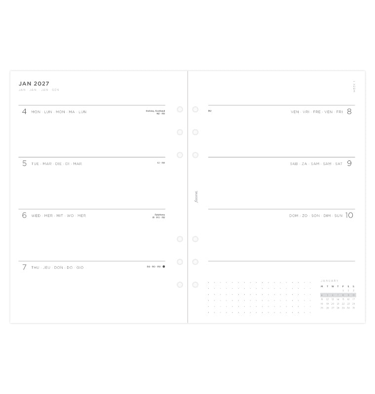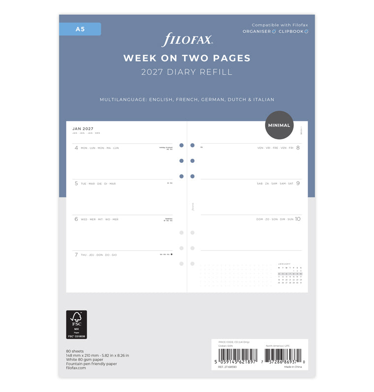 Minimal Week On Two Pages Diary - A5 2027 Multilanguage