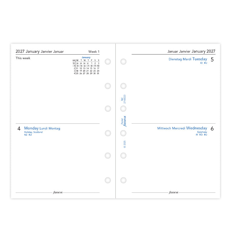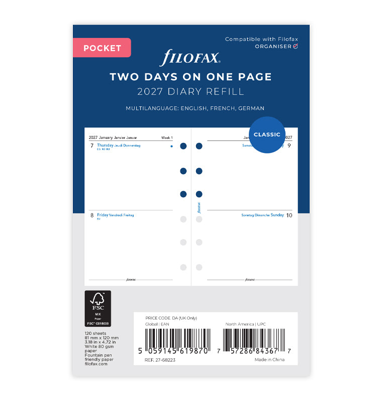 Two Days On One Page Diary - Pocket 2027 Multilanguage