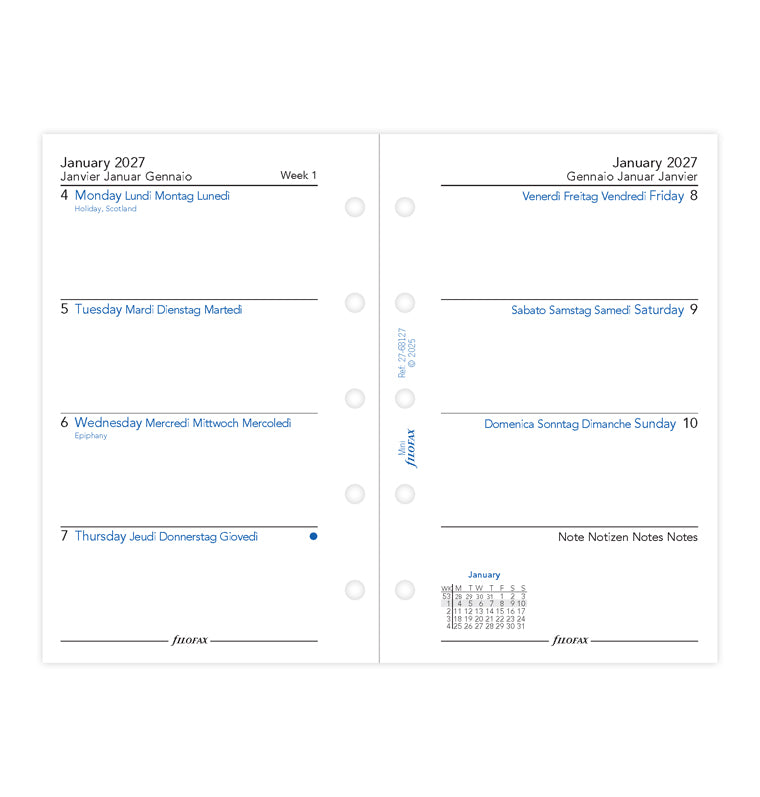 Week On Two Pages Diary - Mini 2027 Multilanguage