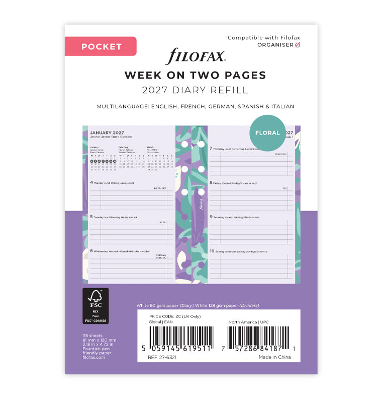 Floral Illustrated Diary Refill Pack - Pocket 2027 Multilanguage